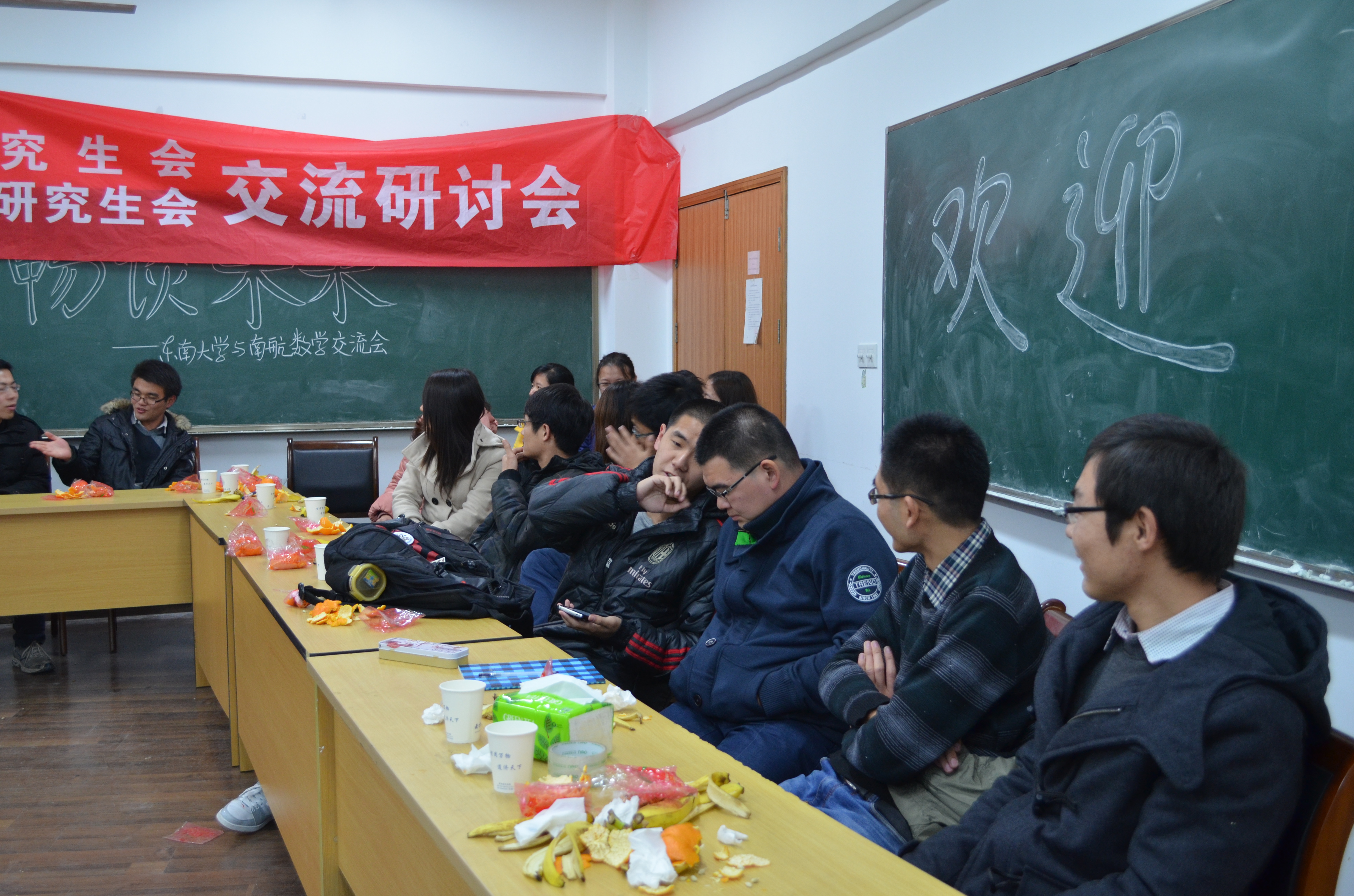 | 2013年12月8日下午15:00在南京航空航天大学理学院会议室,由数学系团委、研究生会主办,南京航空航天大学理学院研究生会协办的“携手共进 畅谈未来”交流研讨会顺利举行。 研讨会活动主要分为以下几个部分:一是学校层面上的交流,听取他们对于“I want you”中国梦的想法,了解他们在这方面所做的工作,另外交流话题将范围缩小至学校,就如何实现“南航梦”(东大梦)进行交流,提出一些建设性意见,取长补短,共建理想校园;二是院系层面上的交流,双方学生就生活、工作、学习等各方面问题进行交流(例如讨论班、科研经验分享),具体了解南航数学系学生的科研状态以及日后的就业情况。 此次活动是数学系研会上学年与南林交流活动的一个延续,加强了两个学校两个院系的交流,进一步开拓了我系研究生的视野。本活动旨在为深入学习宣传贯彻党的彻落实两会精神,深入贯彻落实科学发展观,传播放大立德树人的“正能量”,激励广大学生学习先进、崇尚先进、争当先进。围绕复兴快猫 ,努力使东大早日实现成为“世界一流大学”的“东大梦”主题,积极对外交流,努力学习先进经验,取长补短,共同进步,从各个方面不断完善我们心目中的东大。同时激发广大同学的爱国荣校情怀,奋发进取、不断努力,在自己的工作和学习上取得更大的进步。 |
