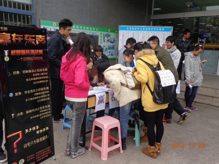 委员会主办、数学系团委承办的第五届“赢在东南”校园精英挑战赛,于2013年11月28日正式拉开帷幕,经过将近一个月的角逐,12月12日晚6:30,在圆形报告厅一楼成功举办决赛,最终活力四射的四匹狼斩获冠军,精卫、4ever one分别获得亚军和季军,而Elivictor、水果忍者获得了优胜奖。数学系党委书记李涛老师、计算机软件学院党委副书记裴峰老师、人文学院党委副书记何熠老师、艺术学院党委副书记徐进老师、以及数学系党委副书记曹海燕老师出席并为决赛担任评委老师。此外,我们还有幸邀请到了来自南京林业大学就业办的陈养彬主任和理学院的师生代表一齐参加了本场决赛。 “赢在东南”来源于央视节目“赢在中国”,旨在快猫 的校园内提供一个大学生展示自我、挑战自我的平台,发掘自身潜力,发挥团队配合、相互协作的价值,借此品味人生、感悟成长,实现梦想,获取成功。自2007年至今“赢在东南”已成功举办五届,且之前的每届赢在东南均被评为当年校园文化节“校园十佳精品活动”,已成为数学系的一大品牌文化盛典。 今年的“赢在东南”校园精英挑战赛共分为初赛、复赛、决赛三个环节。初赛舌战东南通过无领导小组讨论的形式,从前期报名的近300名同学中,经过激烈的竞争,筛选出32名选手随机分成8组进入复赛的角逐。12月4日晚,复赛夺宝奇兵之探秘东南第一环节破冰之旅成功在图书馆数学系第二报告厅举行。当晚的团队风采展示、暗夜骑士、鸡蛋撞地球三个评比环节设计让各小组成员加深了解,配合也越来越默契,为复赛的校外部分奠定了良好的基础。 12月7日,各小组在四牌楼校区附近展开了复赛校外赛的比拼,虽然当天早上雾霾天气较严重,但各支队伍参赛热情依旧高涨。校园景点的探秘、碎片拼图、教陌生人唱校歌,以及从拼图开始的以物换物环节,充分考验了各个参赛团队全方位的综合能力。紧张的一天校外复赛后,5支队伍成功挺进决赛。 12月12日,5个从复赛中脱颖而出的队伍正式进入决赛筑梦东南的对决。第一环节团队风采展示,各支队伍以独特的方式展现他们的自信与活力,也展示了他们一路走来的感悟与成长;第二环节谢天谢地你来啦,由各队根据现场抽取的题目,通过情景剧的形式,针对工作人员抛出的情景模拟问题进行即兴表演;最后一个环节东大名片,要求选手现场展示并解说他们基于调查分析与自身感受为东大绘制的一张特色名片。 最终,四匹狼斩获冠军,精卫、4ever one分别获得亚军和季军,而Elivictor、水果忍者获得了优胜奖。数学系党委书记李涛老师对决赛进行了点评,对赢在东南活动给予了高度的肯定,同时也鼓励大学生应当努力提高自身综合素质,通过活动展现自我,锻炼自我,尤其强调了每一名东大人其实才是东大最好的名片! 第五届赢在东南校园精英挑战赛为广大参与者提供了一个良好的平台,既能让他们将所学知识应用于实际,又能锻炼自己团队配合、沟通交流等能力,将自己打造成学习能力出众,能言善辩又善于配合的大学生。通过此次比赛,选手们既锻炼了各项能力,展示了自身风采,也收获了友谊、自信与难忘的经历。赢在东南,既圆了同学们一个成为精英的梦想,也埋下他们不断提升自己,立志为东大梦、为中国梦贡献力量的种子。 |