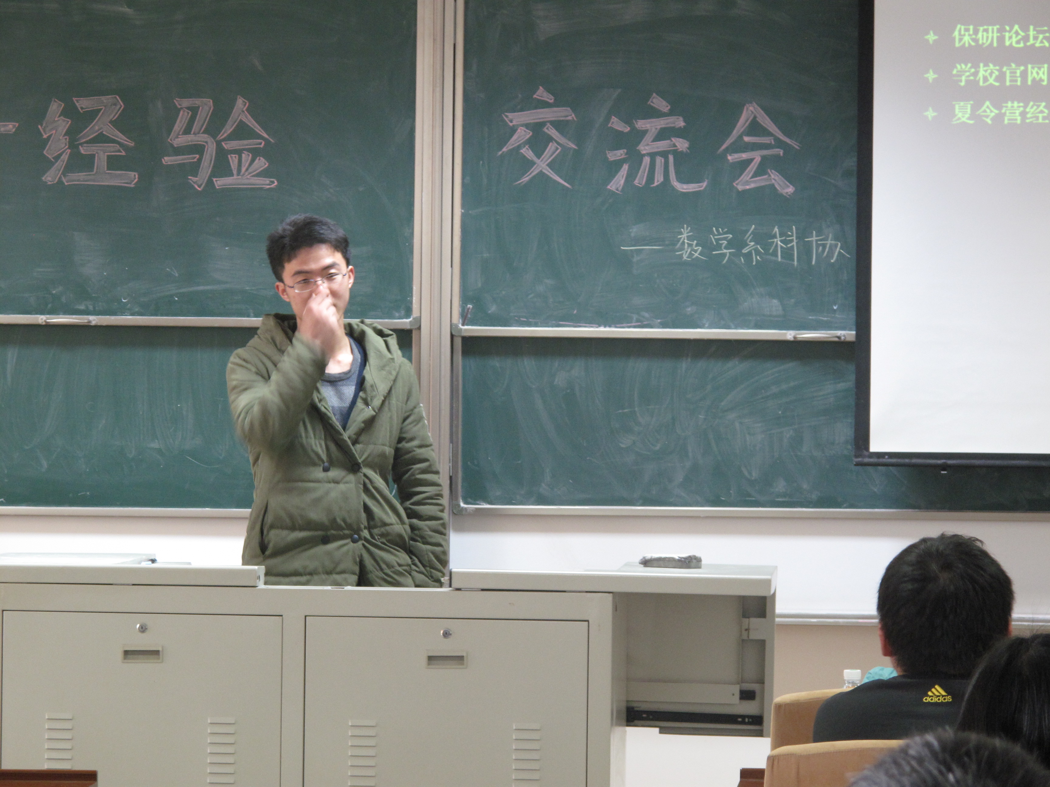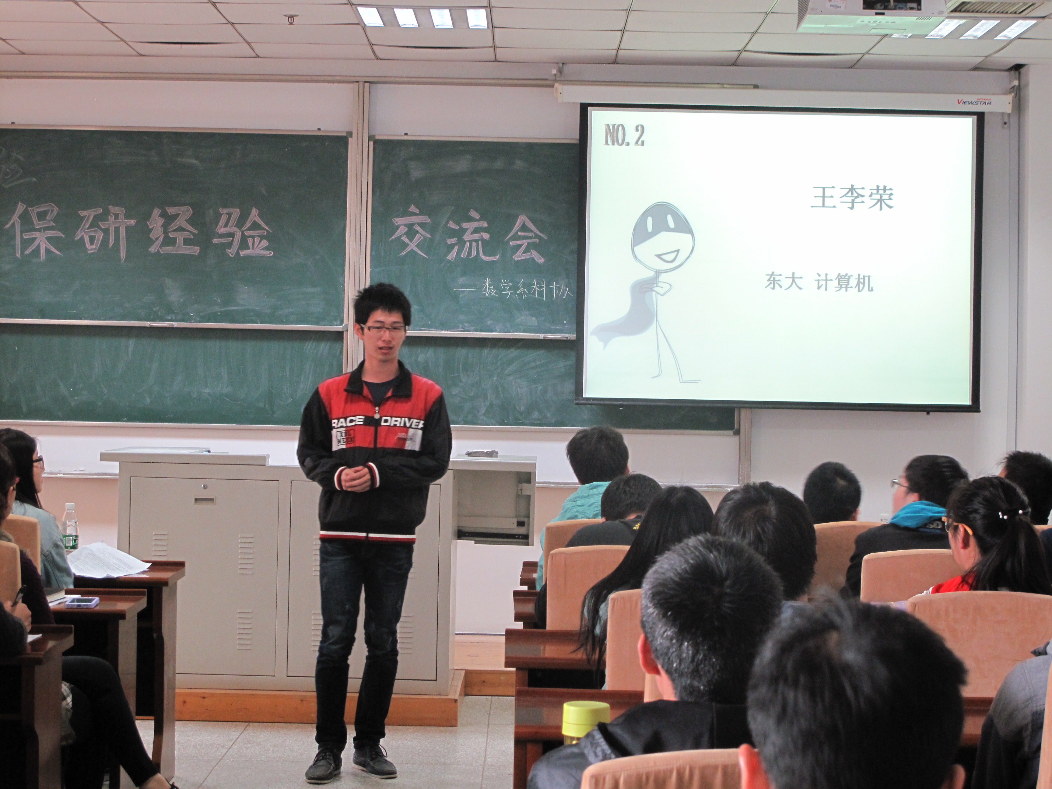 2015年4月3日中午12点半,由数学系团委主办、数学系科协承办的数学系科技节系列活动之保研经验交流会在数学系第一报告厅准时举行。交流会邀请了数学系2011级大四已免研的优秀毕业生代表,与我系二三年级的学生分享、交流他们在自己免研道路上方方面面的经验。 数学系2011级共76名学生,成功免研14人,其中外校4人,其余免研至本校,分别在包括数学、计算机、经管、电气、自动化等不同专业。结合同学们普遍感兴趣的免研学校、专业特色,本次交流会在详细介绍14位免研学长的基本情况后,有针对性地特别邀请了5位学长与在座的同学们分享自己的免研经验,讲述他们各自的免研方式、途径、以及如何在免研的笔试和面试中脱颖而出等等。 免研至中科院数学与系统科学研究院计算数学与科学工程计算研究所的江天舒同学在简单介绍了中科院的情况后分享了自己的笔试面试情况,免研至复旦大学管理学院的林方正同学详细讲述了自己在大三暑假参加四次夏令营的经验,免研至东大计算机的王李荣同学分享了自己联系导师过程中的一些趣事和经历,范毅同学介绍了自己免研经管学院的一些需要注意的细节,楼宝梁同学则讲述了参加上财免研过程中的三起三落。 最后,同学们和学长们针对感兴趣的问题进行一对一的交流,现场氛围热烈而融洽。交流会高潮迭起,最终圆满落幕。希望通过这次活动,同学们能够吸取相关的经验,全面准备保研考试。最后衷心祝愿数学系的每一位同学都能不辜负宝贵的大学四年,收获美好的未来!(通讯员:沈佳妮) |