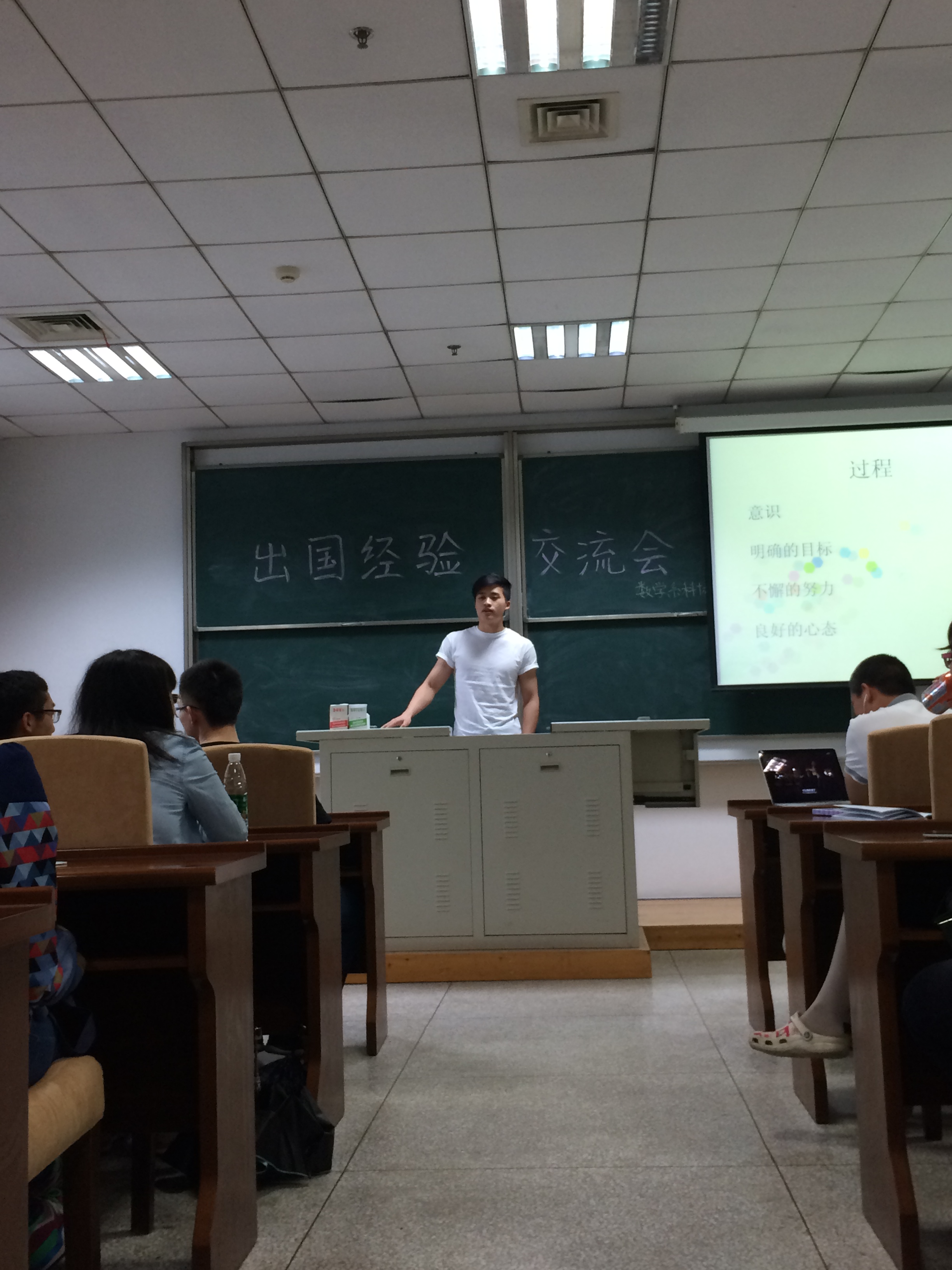 2015年5月29日中午, 由数学系团委主办、数学系科协承办的数学系科技节系列活动之出国经验交流会在数学系第一报告厅成功举办。交流会邀请了数学系2011级大四已确定出国的多位优秀毕业生代表,与我系低年级的同学们分享、交流他们在自己出国申请道路上的各种经验。数学系团委书记袁煜昶老师出席本次交流会。 数学系2011级共76名学生,已明确出国留学的有20人,分别去往耶鲁大学、哥伦比亚大学、波士顿大学、纽约大学等美国高校,此外还有部分前往英国、法国、新加坡、日本等国的不同高校,攻读计算、统计、金融等相关数学的专业。本次交流会在详细介绍20位出国学长的基本情况后,有针对性地特别邀请了6位学长与在座的同学们分享自己的出国经验,讲述他们各自的出国方式、途径、以及如何在出国准备过程中脱颖而出的经验等等。 申请至耶鲁大学的王伟同学为我们介绍了申请中各个要素的注意事项,为我们提供了许多关于美国学校在招收中国学生时非常有价值的信息;申请至哥伦比亚大学应用数学专业的邵天一同学给我们分享了作为数学专业背景的学生在申请出国时主要面临的可选方向以及困境,并为我们推荐了许多值得关注的论坛和信息;申请至纽约大学的丁丰盛同学分享了备考的经验和相关注意事项,提到在申请过程中良好的心态的十分重要;申请至英国伦敦大学学院的�汶迪同学分享了英国高校申请时的要点;申请至新加坡南洋理工大学刘晓玉同学着重为我们介绍了新加坡的生活学习环境。另外通过数学系威斯康辛3+2项目出国的李宸同学也为大家分享了在自己大四一年在美国的学习生活见闻和感受。通过学姐学长们的讲解,我们了解到申请不同地区不同学校对成绩、科研成果、经历的要素的侧重不同,需要我们结合自身实际做出选择,进行准备材料的相关工作。 最后,同学们和学长们针对感兴趣的问题进行一对一的交流,现场氛围热烈而融洽。交流会不仅让同学们对出国留学要做的准备工作有了深入了解,同时,通过与优秀学长的交流,也拓宽了我们的视野,“不积跬步,无以至千里”,不管选择哪个方向,只要脚踏实地的一步一步走下去,一定会离梦想更近。最后衷心祝愿数学系的每一位同学都能不辜负宝贵的大学四年,收获美好的未来! (通讯员:樊雪) |