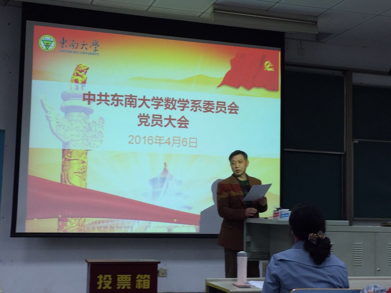根据《关于召开中国共产党快猫 第十四次代表大会的通知》(东大委【2016】23号)文件精神,按照学校党委的部署与要求,我系党委于 4月6日中午在九龙湖校区教六104召开全体党员大会,选举出席校党代会代表。