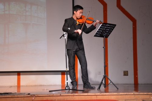 朱婉灵老师与李佳明同学的合奏更是让大家眼前一亮,东方与西方,古典与现代,旗袍与西装,在古筝和小提琴琴弦下流淌出婉转悠扬的渔舟唱晚。