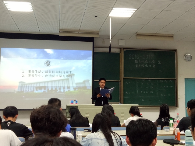 5月25日晚,快猫 2016-2017年团代会暨学代会在教六-104成功举办。快猫 团委书记、15、16级本科生辅导员蒋丽怡老师,快猫 学办主任、13级本科生辅导员朱婉灵老师,快猫 团委副书记周莲芳,快猫 学生会主席周嘉铭,快猫 科技协会主席胡慧等出席了本次会议。全体本科生代表共计150余人参加了本次会议。