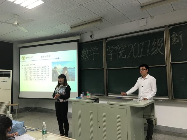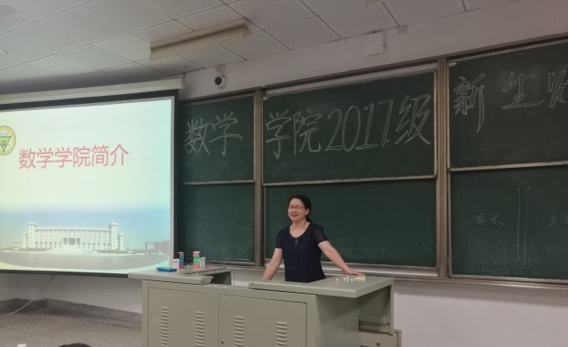 本次见面会由三个议程组成,分别是院系介绍、专业介绍和年级大会。曹海燕老师代表学院欢迎17级新生正式成为数院大家庭的一员,向参与迎新工作的老师和同学所付出的辛勤工作表示感谢。
