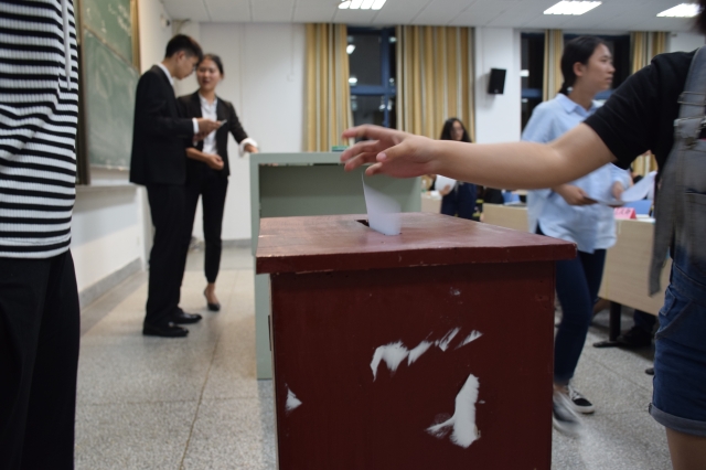 接着,学生会主席团候选人陈军、徐雲昊、薛忠琴先后上台演讲。他们分别讲述了他们对学生会的看法和在新的一年对学生会工作的计划,表明了他们全心全意为快猫 这个大家庭服务的决心。之后,新媒体中心主任候选人杨伊凡上台讲述了自己对新媒体中心未来的规划。经过老师和全体学生代表的投票,最终,总计票人蒋丽怡老师宣布王雪晴同学当选为新一任学生团委副书记,陈军、徐雲昊、薛忠琴成为新一届学生会主席团成员,杨伊凡当选新一任新媒体中心主任。