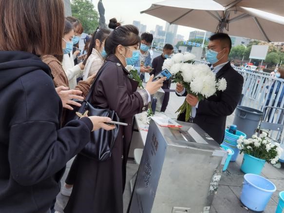 进入纪念馆前,支部成员们自觉向纪念馆捐款,希望通过自己的微薄之力,来帮助在这场惨绝人寰的大屠杀中的幸存者。每一位成员都获得了一支白菊花,以此敬献遇难同胞。