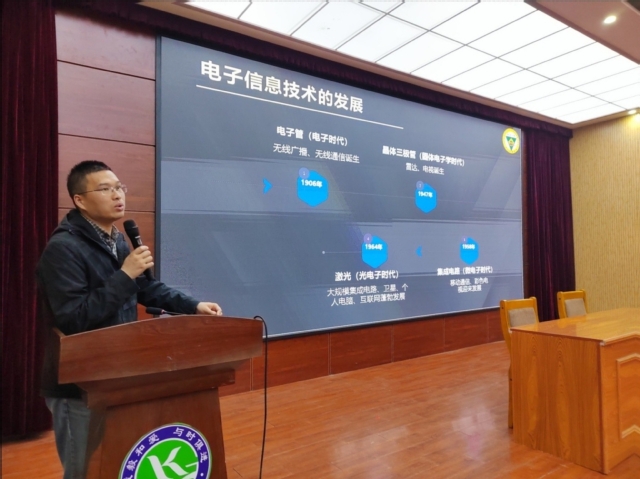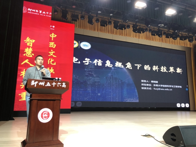 授牌仪式之后,在东报告厅,信息科学与工程学院傅晓建副教授为开高高三学子带来了专题讲座——《电子信息视角下的科技革新》,傅老师以无线通信、人工智能等作为典型案例,阐述这些对社会产生革命性影响的科技革新背后,如芯片、无线电、计算机等电子信息器件和系统的发展历程,并展望电子信息领域新兴的研究方向及其对科技革新的影响。通过傅老师的讲解,让学生们耳目一新,对最前沿的科技产生了浓厚的兴趣,树立了科技强国的信念,在以后的学习生活中,不断进取,努力学习,报效祖国。