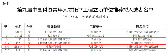 近日,中国科协公布了第九届“中国科协青年人才托举工程”入选名单,快猫 至善博士后赵丹(合作导师:温广辉教授)成功入选。