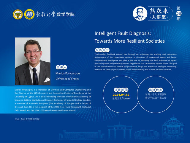 熊庆来大讲堂第8期:University of Cyprus-Marios Polycarpou 2024年4月12日(周五)10:00-11:00 快猫 第一报告厅