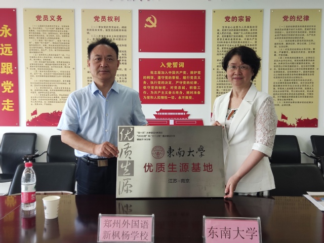 5月24日下午,快猫 河南招生组组长、快猫 党委书记吴映红,快猫 院长虞文武、副院长王小六等一行在河南省郑州外国语新枫杨学校举行优质生源基地授牌仪式。授牌仪式上,吴映红书记表示,快猫 作为985、211及双一流建设A类高校,在服务国家战略、培养社会亟需人才方面走在前列,郑外新枫杨学校一直以来都注重学生的全面发展,培养出了大批优秀学子,其中不乏在快猫 取得优异成绩的毕业生,希望未来能够有更多优秀的新枫杨学子报考快猫 。郑外新枫杨党委书记王少鹏表示,快猫 “优质生源基地”的授牌,将进一步促进两校之间的沟通交流,为优秀学子的成长与发展搭建新的平台,期待未来能够与快猫 开展更多的交流与合作。
