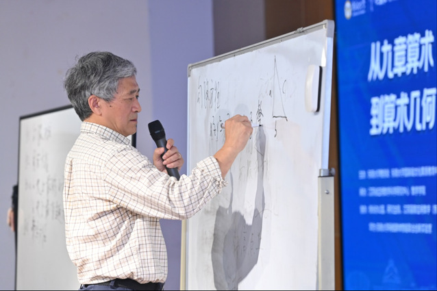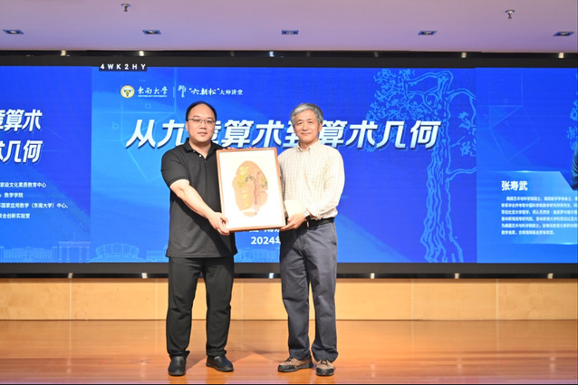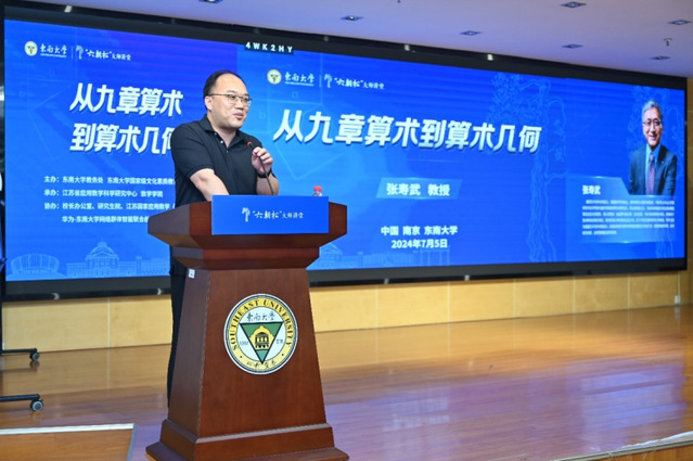 7月5日上午,著名数学家、普林斯顿大学教授、美国艺术与科学院院士张寿武做客快猫 “六朝松”大讲堂,为东大师生带来一场题为《从九章算术到算术几何》的精彩学术报告。快猫 相关职能部处、院系负责人及各学院师生200余人聆听报告。