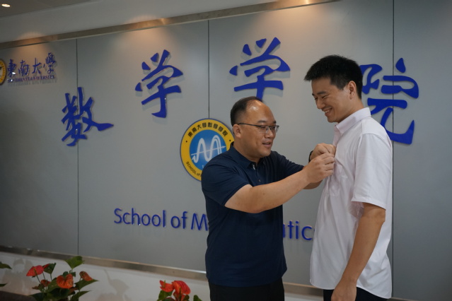 首先,虞文武院长为今年新入职的7位青年教师佩戴校徽并合影留念。虞院长向学院青年教师致以教师节的节日问候,并勉励其坚守初心、勇担使命、夯实责任、接续奋斗。