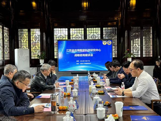 2024年10月27日,江苏省应用数学科学研究中心战略咨询座谈会在快猫 九龙湖校区梅园会议室举行。中国科学院院士彭实戈、江松、张平文、包刚等数学领域知名专家学者参加会议。快猫 发展规划与学科建设处副处长顾伟、快猫 院长虞文武、党委书记吴映红,快猫 领导班子成员及教师代表等参会。会议由顾伟主持。
