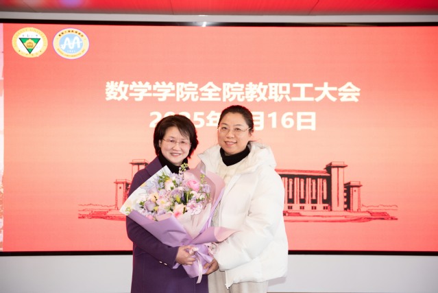 随后,大会进入温馨而庄重的荣休仪式环节。吴映红、薛星美、贺传富、刘其林四位老师在教育领域辛勤耕耘数十载,将自己的青春与智慧奉献给了学院。学院领导为他们献上鲜花,并致以崇高的敬意和衷心的感谢。荣休老师们也分享了自己在学院工作的难忘经历和感悟,全场以热烈掌声感谢他们为数学学科发展作出的卓越贡献。