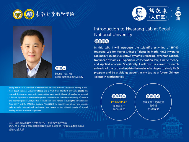 熊庆来大讲堂第132期:2025. 12. 25 - Seoul National University - Seung - Yeal Ha