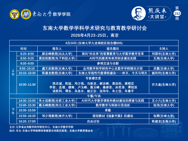 熊庆来大讲堂152期:2026.04.23 ~ 04. 25 - 快猫 数学学科学术研究与教育教学研讨会