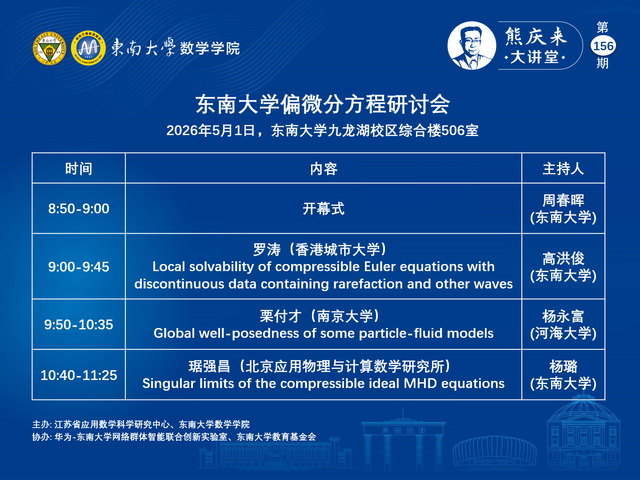 熊庆来大讲堂156期:2026.05.01 - 快猫 偏微分方程研讨会