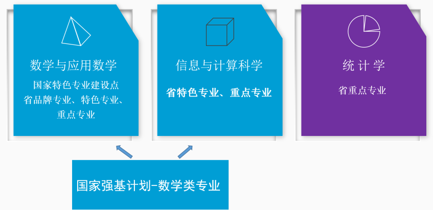 家强基计划数学类专业涵盖数学与应用数学、信息与计算科学两个专业,实行单独编班授课,实施本硕博衔接的人才培养模式。数学与应用数学、信息与计算科学、计算机软件、智能制造、信息安全、高端芯片等关键领域,依托国家一流专业建设点,充分发挥国家应用数学中心和省部级一流平台的作用,联合计算机、人工智能、网络安全等强势学科,基础应用并重,着力构建数理通识教育基础上宽口径个性化的拔尖人才培养体系, 凸显“以理为基、理工交叉、本研一体”三大特色,致力发挥每一位学生的创新潜能和创新活力,为国家和社会培养造就一批数学与应用数学、人工智能、网络安全等领域的创新拔尖人才。